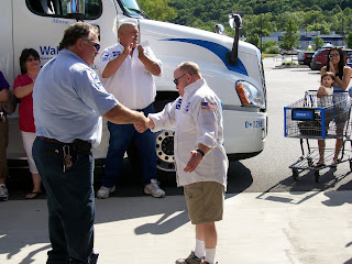 After all the presenting, they had a special heart shaped cake to share, and Doug got a ride around the parking lot in one of the big rigs they brought in for the event. Doug's sister Valerie has been feeling better, and was able to come from Hospicare for the event. My mom, his other sister that lives locally, also went along on another ride around the parking lot with Doug. A fabulous, fun day for Doug and for us! He has had so much loss these past few years, and we have some tough days ahead, but today was SO WONDERFUL! I cannot say enough about the dedication of the Walmart drivers, who started this program, and make all the arrangements for the event. One driver there today was even there on his day off!!